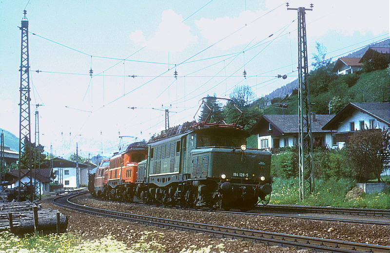Die Loks der Reihe E 94 kamen über Rosenheim - Kufstein planmssig nach Tirol und fuhren teilweise über Innsbruck hinaus südwärts bis zum Umspannbahnhof der italienischen Staatsbahnen Brennero/Brenner. Da die Österreichischen Bundesbahnen auch Maschinen dieses Typs besassen (Reihe 1020), kam offensichtlich eine freizügigere Verwendung der Loks zwischen DB und ÖBB auf dieser Route vor. Zum Brenner hinauf wurden in der Regel mehrere Loks benötigt. |