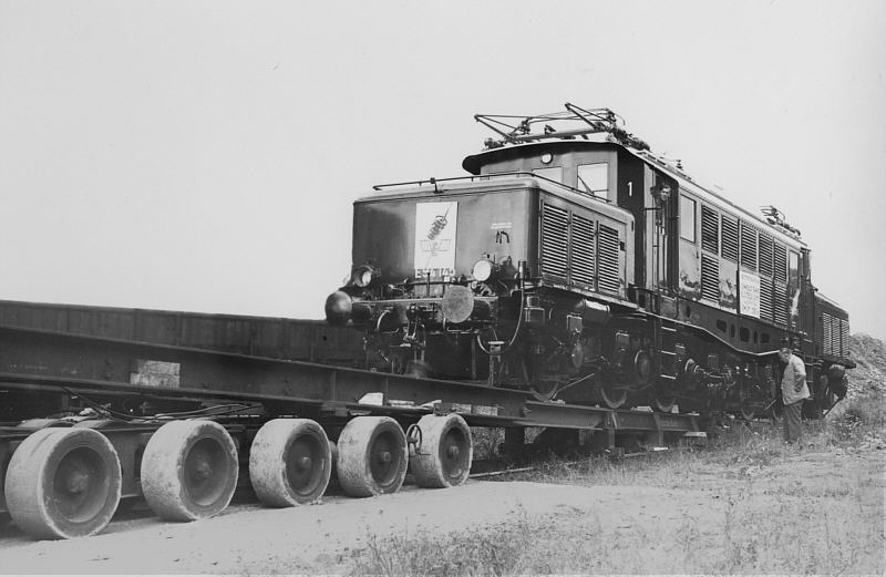 Eine ungewöhnliche Szene hat der Altmeister hier festgehalten. Für eine Ausstellung musste die E 94 145 anno 1950 herhalten und dazu das vertraute Schienennetz verlassen. Mit dem achtachsigen Culemeyer-Transporter ging die Reise weiter. Im oberen Bild die Verladung. Beim unteren Foto scheint das Gewicht der Lok mächtig auf den Transporter zu drücken! Die Nr. 145 ist eine “Teile-Lok”. Denn der mechanische Teil der Lok, von der Wiener Lokfabrik Floridsdorf erstellt, kam 1944 zur RBD München und wurde dort bei einem Bombenangriff Anfang 1945 schwer beschädigt. Im Jahre 1950 wurde sie von den Firmen AEG und Krauss-Maffei dann zusammengebaut und im November des Jahres an die DB übergeben (Bw Augsburg). Übrigens, die Szene ist ein tolles Vorbildmotiv für die Modellbahn, wenn man mal eine Dummy-Lok oder ein defektes Modell übrig hat. |