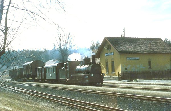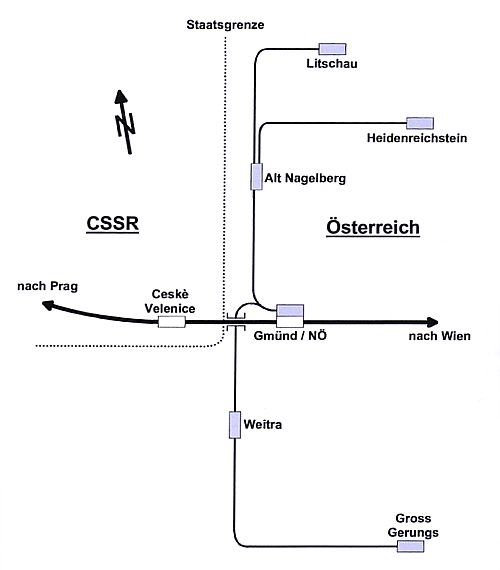 Stichwort: Waldviertel und die Eisenbahn Mit dem Waldviertel wird eine Mittelgebirglandschaft umschrieben, die sich zwischen dem Mühlviertel im Westen und dem Weinviertel im Osten nördlich der Donau Richtung Grenze zu Tschechien (früher zur CSSR) erstreckt. Die Landschaft ist relativ dünn besiedelt ohne grössere Städte, aber lag immer im Zentrum der alten Donaumonarchie und war damit zunächst mehr Durchgangs- und später Grenzland. Die Region wird von der Hauptbahn Wien - Prag- Berlin durchschnitten und war jahrzehntelang durch den Expresszug “Vindobona” vielen Eisenbahnfreunden bekannt. Dieser Zug wurde lange Zeit durch die beteiligten Bahnverwaltungen ÖBB, CSD und DR mit wechselnden Triebwagen bedient, zuletzt allerdings mit normalem Wagenmaterial. Gmünd war und ist Grenzbahnhof, wobei der ÖBB-Bahnhof allerdings eine Neuanlage ist, da der alte Bf. nach dem Ersten Weltkrig nicht mehr auf österreichischem Staatsgebiet lag. Nach der sog. Wende in Osteuropa sollte der Verkehr auf der Durchgangslinie neu belebt werden, ist aber auch heute eher mässig (die Züge befahren meist die östliche Relation Prag - Brünn - Wien). Seit Beitritt von Tschechien zur EU liegt das Waldviertel wieder im Herzen Europas. Beiderseits der Grenzen hofft man nun auf viele gemeinsame regionale Projekte und auf eine Verbesserung der ziemlich strukturschwachen Regionen. Das Waldviertel setzt in verstärktem Maße auf einen Ausbau der Tourismusangebote. Hierzu zählen auch die Museumszüge auf den besagten Schmalspurstrecken, die sich einer steigenden Beliebtheit bei Bahnfreunden und Naturliebhabern erfreuen. Wir wär es mal mit einem Urlaubstripp in diese Region? (Red. 04/2005).